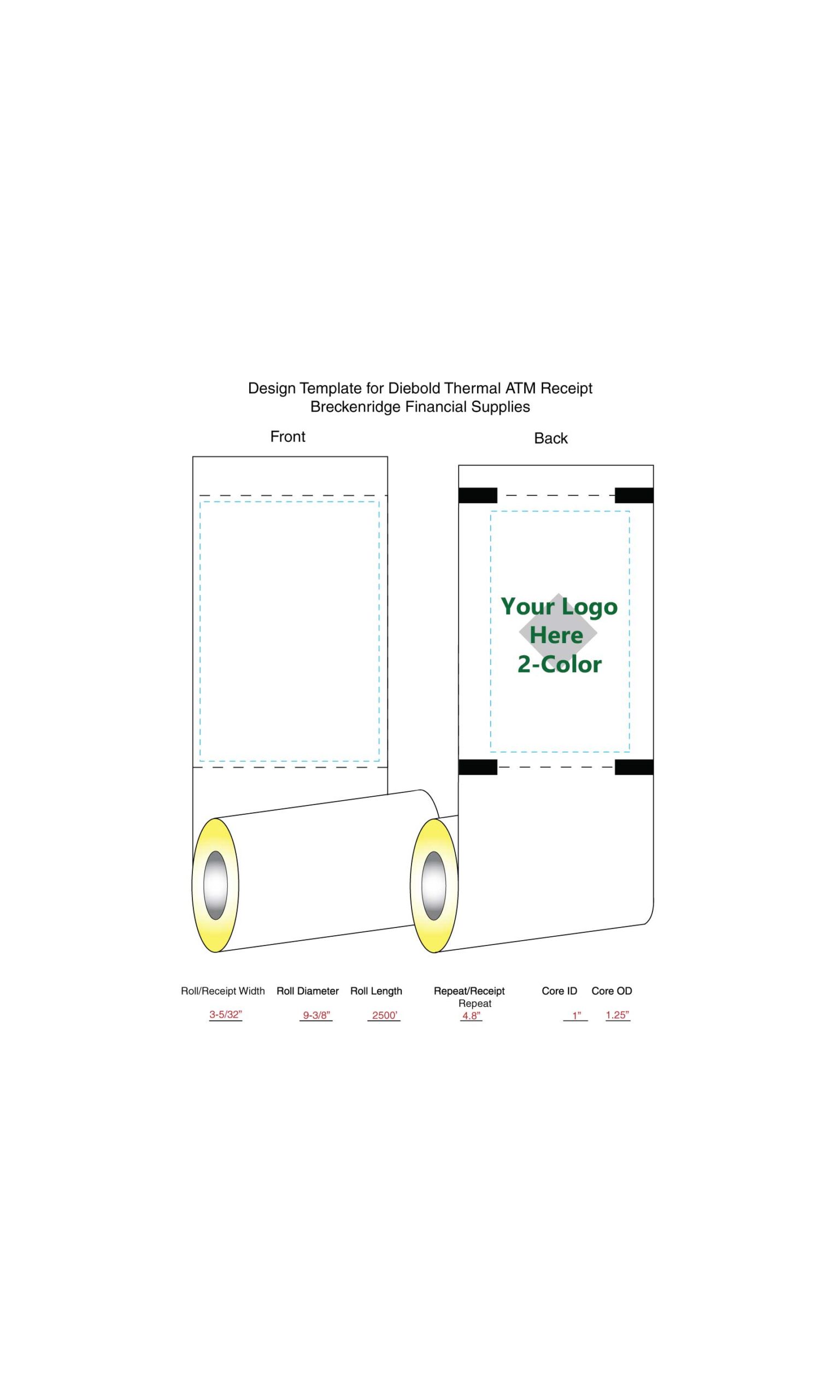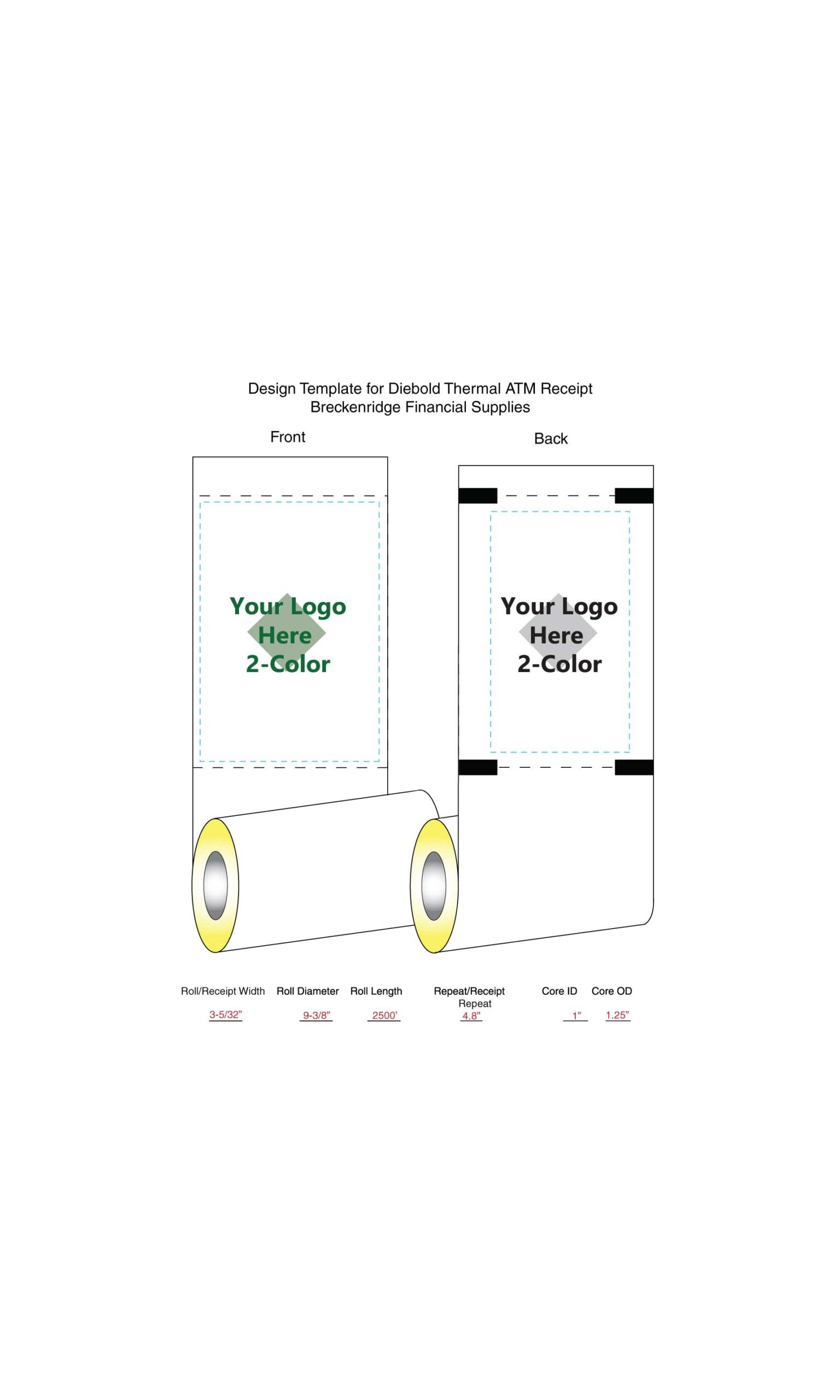 Custom Receipts for Diebold Opteva 500 ATMs, Printed 2 colors, 2 rolls/case